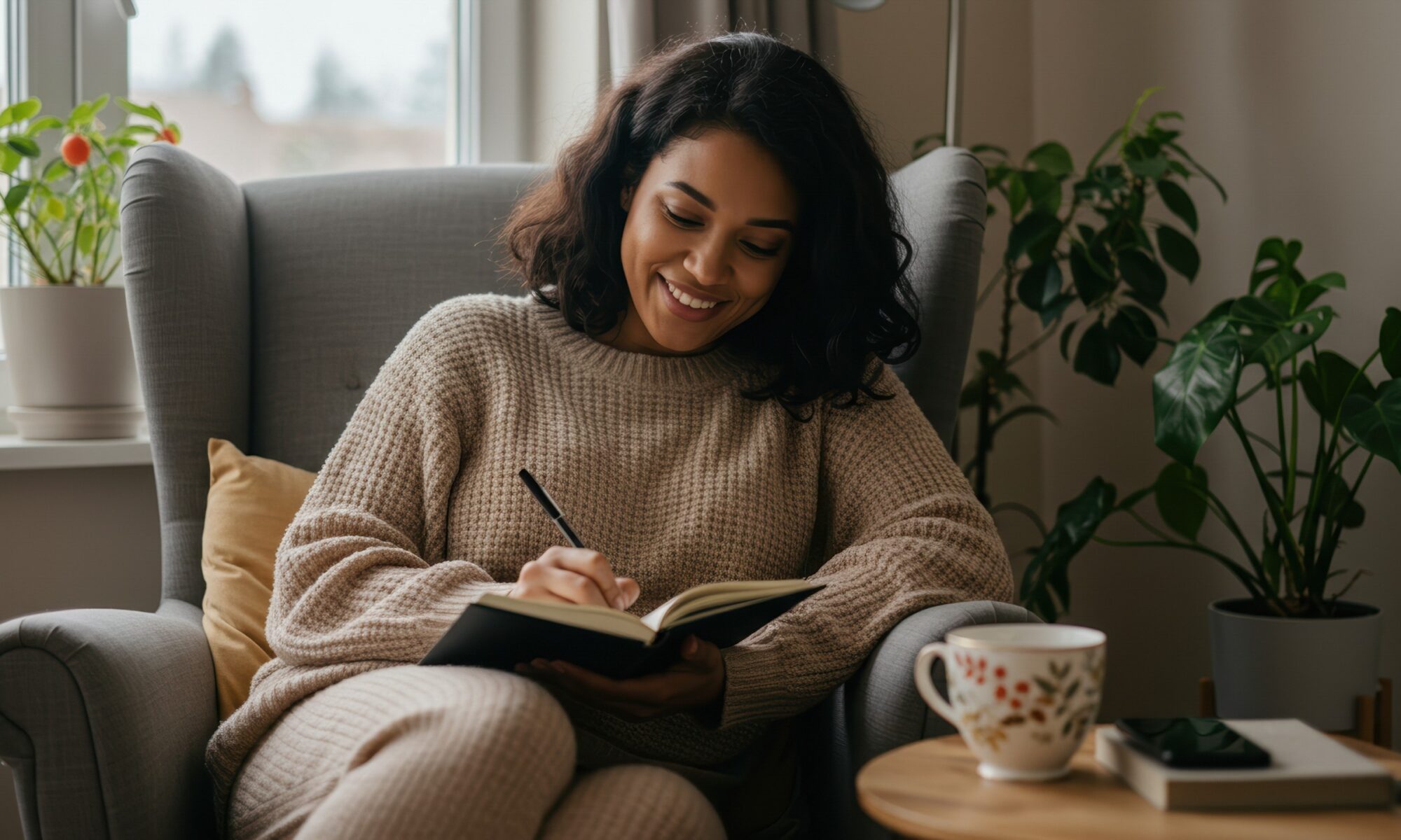 - Journaling – Grab a notebook and jot down whatever comes to mind. You could write about your day, list things you’re grateful for, or explore a specific feeling. Getting your thoughts down on paper can provide clarity and relief.